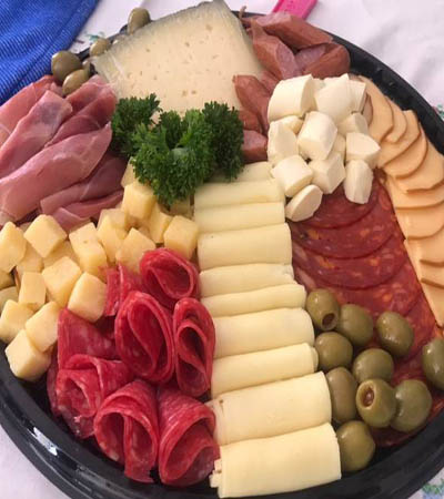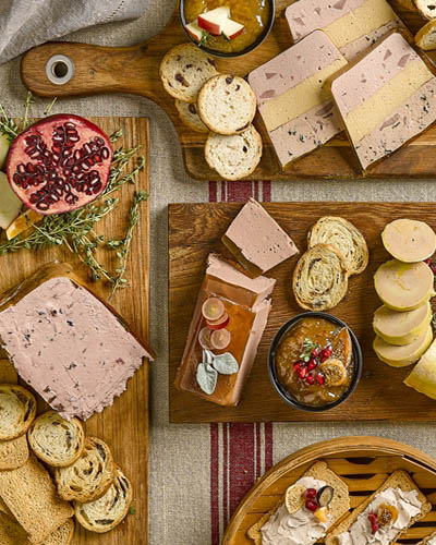 Quesos: Cabrales, manchego, tetilla, roncal, torta del casar, gouda, maasdam, etc. Pates: A la pimienta, mousse de pato, de campaña, etc.